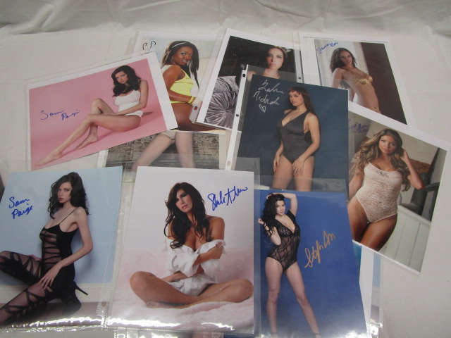 This large selection of thirty-nine autographed, promotional photos of Playboy Playmates and adult film stars includes twelve with their corresponding Certificates of Authenticity. Stars include Samantha Page, Nicole Skyler, Shauna Noelle and more. These photos are in good condition. Please preview.