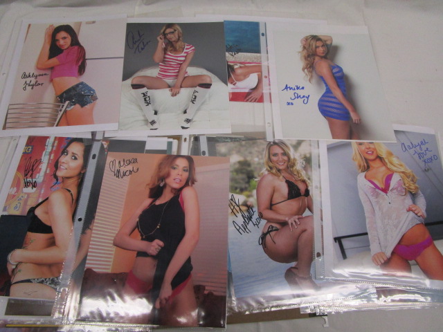 This large selection of thirty-one autographed, promotional photos of Playboy Playmates and adult film stars includes sixteen with their corresponding Certificates of Authenticity. Stars include Amelia Talon, Abby Cross, Abby Lee Brazil and more. These photos are in good condition. Please preview.