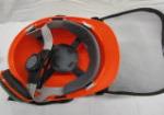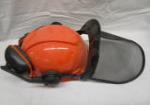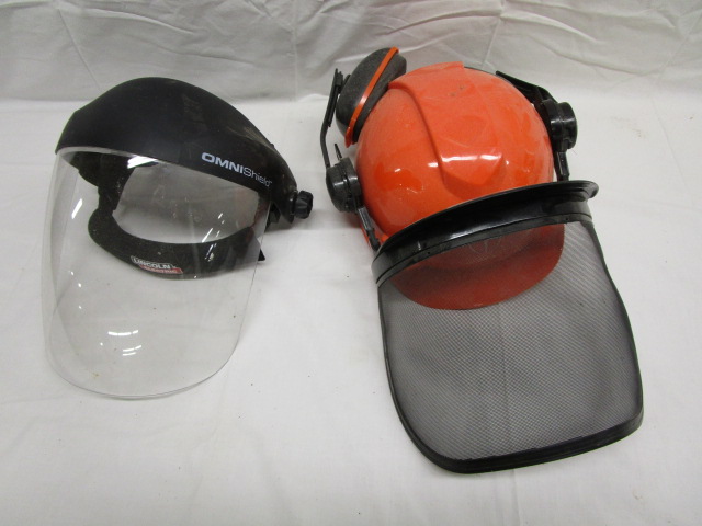 .Arbormen or tree work safety gear. Hard hat. Protective visor. Two units. One with ear protection.