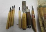 Small box lot of wood carving tools including a Millers Falls carving tool set #106.