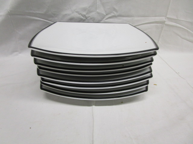 Stack of 8 Studio Nova plates, white with a black border, in nice used condition.