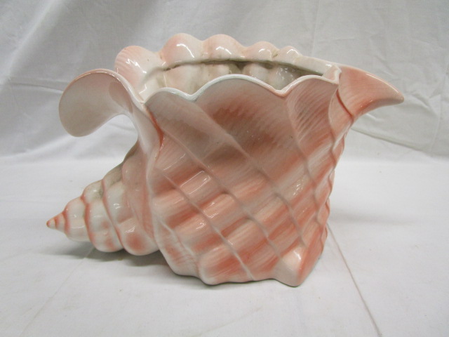 Ceramic conch shell planter. Made in Portugal by Ereiras. Measures 13" wide x 8" tall x 9" deep. Please preview.