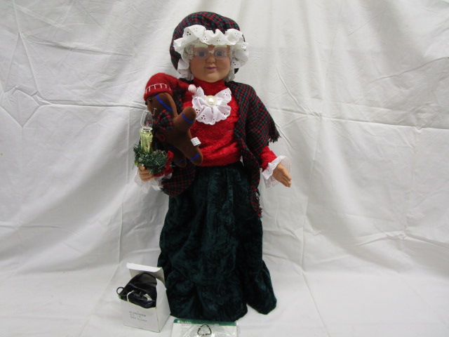 Animated Mrs. Claus stands 24" tall and comes with a power cord and an extra light bulb for her candle. Please preview.