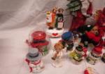Cute Christmas lot 3 snowmen trinket boxes, teddy bears and Santas and angels oh my. altogether there are 20 figures, trinket boxes, and a music box that needs some love. They range in size from 3" to 11". Please preview.