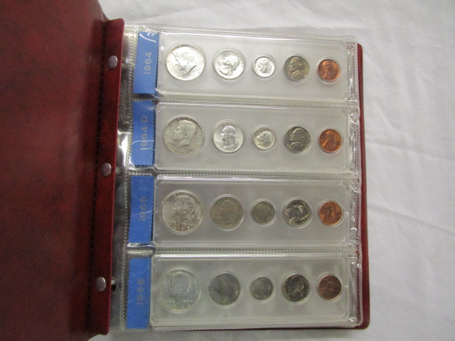 Coin binder with U.S. Mint proof sets with no boxes from the years 1964 to 1970s. Please preview.