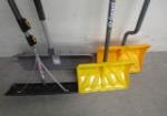 Be ready for winter with this nice assortment of snow removal items including a "Garant" brand snow shovel, a "True Temper" brand snow shovel, a D-grip snow shovel and a roof rake. These items are in used, good condition. Please preview.