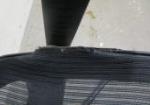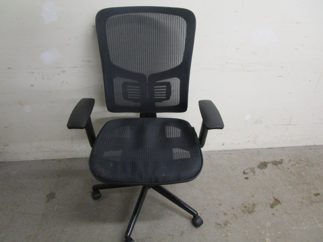 This black mesh Staples adjustable office chair (model # BT-825) has casters for easy movement. This chair does have a 5-1/2" tear in the material where the material meets the rim of the seat (as indicated in the photos). Otherwise it is in used, good condition. Please preview.