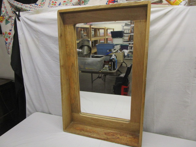 This unique 24" X 36" Renwil brand maple framed mirror (model MT1446) is in used, good condition. Please preview.