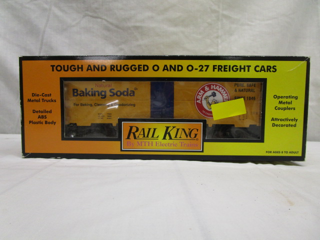 This collectible Rail King (by MTH Electric Trains) die cast model Arm & Hammer Baking Soda O-gauge modern reefer car is in its original (opened) box. The contents appear to be in new condition. Please preview.