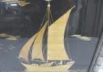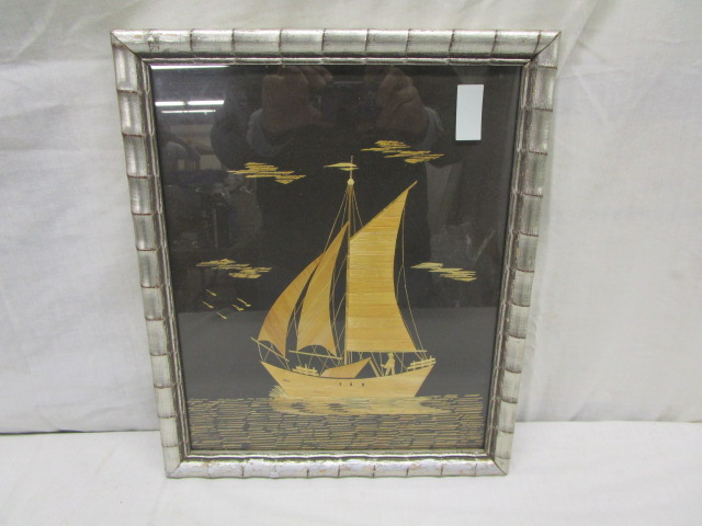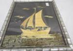 This lovely 12-1/2" X 15" metal etched gold and black foil 3-D England Laser schooner art piece is in a silver frame. This item is in used, good condition. Please preview.