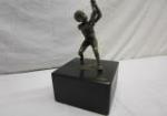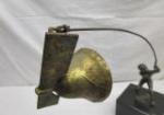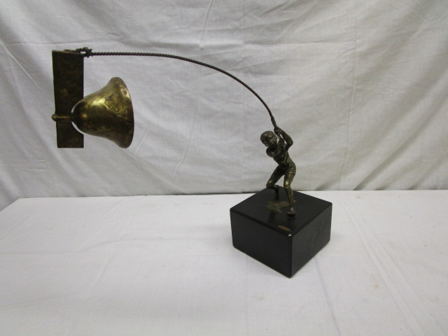 This wonderful, '71 vintage bronze table top sculpture titled "Boy Ringing Bell" by artist Curtis Jere is in good condition. Please preview.