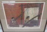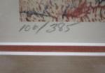 This impressive, signed, 21-1/2" X 18-1/2" framed numbered print of a painting titled "Peaceful Day" is in a lovely brown frame. It is in good condition. Please preview.