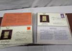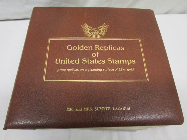 Large collection of (37) Golden Replicas of United States Stamps. These items are proof replicas on a gleaming surface of 22kt. gold in their protective sheet and binder. These Stamps are in very good condition. Please preview.