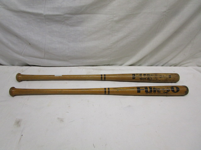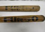 Two "Fungo Do Not Hit Pitched Ball" bats measuring 3' long. One of the bats has a chip and some writing on it. Please preview.