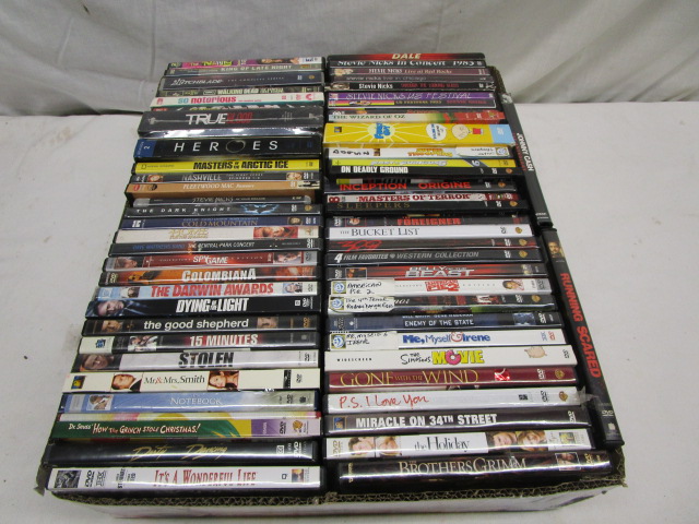 Box lot #3 of 60 individual DVDs and DVD sets including Heroes Season 2, Gone With the Wind, Family Guy Seasons 1 & 2, Stevie Nicks in Concert and more. Please preview.