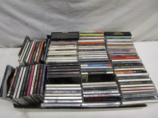 Box lot of over 100 CDs including artists such as John Cogar, Rod Stewart, Fleetwood Mac, Heart, Alan Jackson, and more. Please preview.