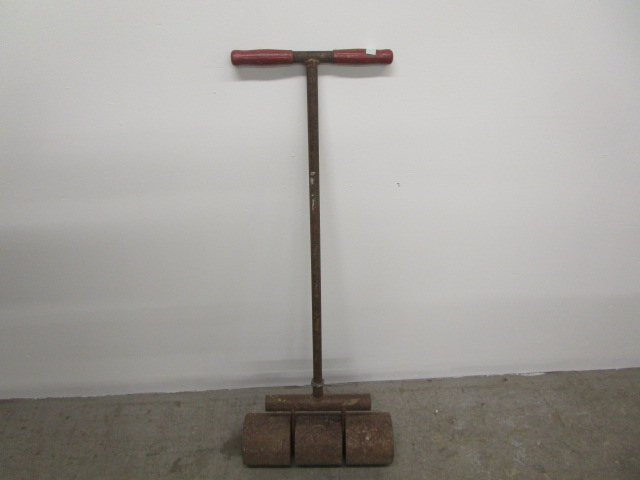 Heavy duty floor roller measures 40 3/4" tall x 15 1/4" wide. Very heavy, possibly 100 lbs. Please preview