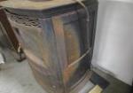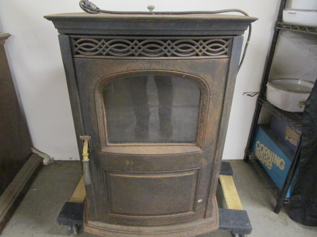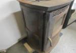 Harman Stove Company single door glass panel pellet stove. The stove comes with the top cover, 1 front door, and a user manual. The stove needs work, it has been in storage for some time and needs to be cleaned, painted and new insulation on the door seals. Great bones, please preview. Because of the varying sizes of stoves, to be sure this will fit for you, please come to the gallery for exact fitting measurements.