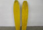 Interesting pair of “Snurfer Board” mono ski type snow boards. These item were designed to be controlled by the attached rope. This design does not use bindings but has metal tracks for traction. These items measure 7“W X 48“L. One of the boards has a small chip on the top as indicated in the photos, otherwise they are in good condition. Please preview.
