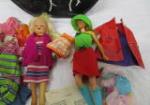 This vintage Barbie and Midge Travel Pals, strap held, vinyl bag includes Barbie style clothes, accessories and two dolls. Dolls include a Pedigree Sindy doll and a doll with various Barbie body parts. These items are in used, good conditions. Please preview.