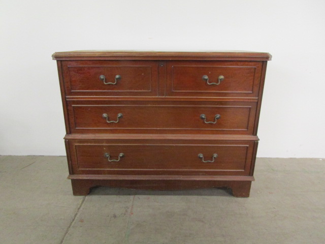 Beautiful Ed Roos Sweetheart Cedar Chest featuring two faux drawers, one large drawer under the storage area and lovely hardware. This hope chest measures 40'W X 19"D X 31"H. This item has some wear due to use as depicted in the photos. Please preview.