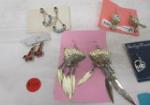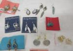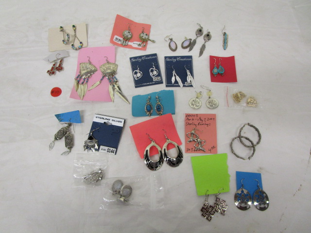 This nice collection of over fifteen pairs of pierced earrings feature a variety of designs. These designs include Native American designs, nature related designs and gems. Several are labeled as Sterling Silver. These pieces are in good condition. Please preview.