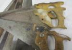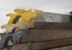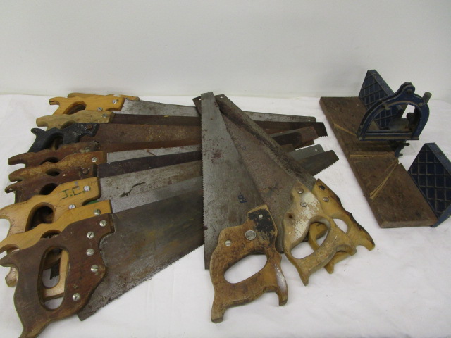 This set of thirteen vintage Disston style handsaws also includes a vintage Craftsman miter saw. These saws are in vintage, used condition. Please preview.