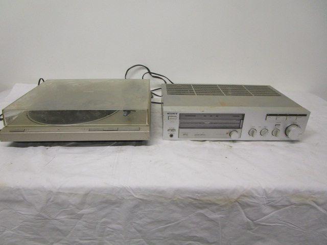 This pair of electronics includes a Sony STR-VX2 AM/FM stereo receiver and a Pioneer PL-620 turntable. These items are in used, good condition. Please preview.