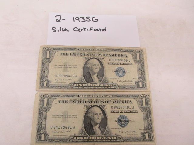 This pair of 1935G Silver Certificates are in circulated condition. Please preview.