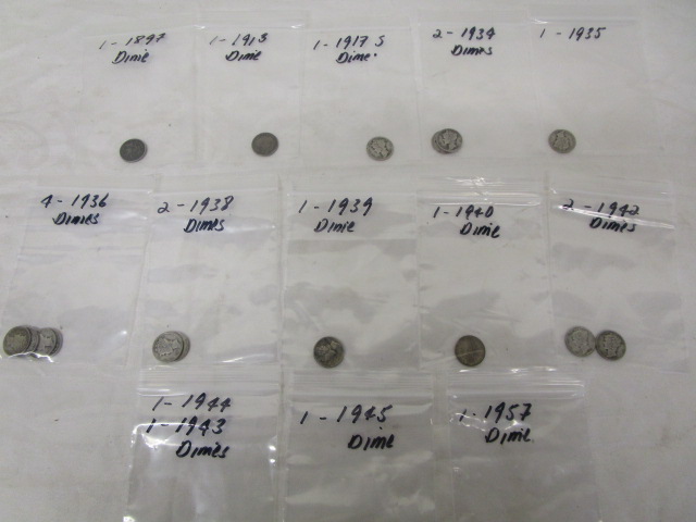 This collection of twenty dimes (silver and mercury dimes included) ranges in years from 1897-1957. Please refer to the photos for coin details. These coins are in circulated condition. Please preview.