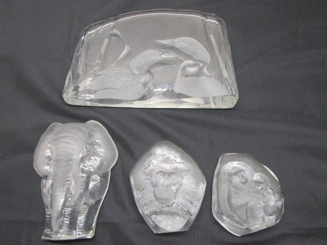 This stunning collection of four Cristal d'Arques lead crystal paperweights includes an elephant, loons, and monkeys. These items are in previously owned, good condition. Please preview.