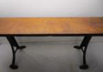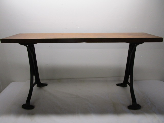 This nice rustic hand made bench features cast metal legs and dark wood.This piece measures 39"W X 9"D X 19"H. This piece is in used, good condition. Please preview.