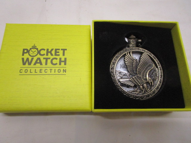 This nice Invicta brand vintage pocket watch (model # 49003) features an eagle design. This watch is from the Pocket Watch Collection line. It is in new condition, in its original box. Please preview.