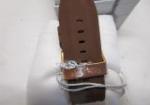 This gorgeous Cavavelle New York by Bulova Men's Chronograph Watch (model # 44A102), features a rose gold -toned case and a brown dial and a brown silicone strap. This item is in new condition in its original box. Please preview.