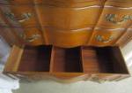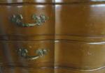 This Continental Furniture Co. dresser, features seven drawers (with dove tail design), curved front and gorgeous hardware. This piece measures 36"W X 20"D X 56"H. This piece is in used, good condition. Please preview.