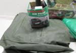 This assortment of camping equipment includes two air mattresses (one Ozark Trail brand), a tarp and a Super battery air pump. These items are in used, good condition. Please preview.