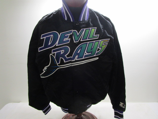 This vintage Tampa Devil Rays MLB Starter satin varsity jacket is in previously owned condition. Please preview.