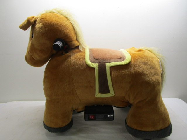 This adorable 6 volt "Stable Buddies" Chestnut Horse Plush Ride-On toy by Dynacraft (model # 8804-82DKV) will need an adapter replacement and possibly a battery. It is in good condition. It has not been tested and is being sold as is. Please preview.