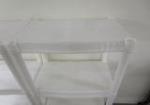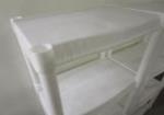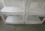 Pair of white plastic molded shelving units. Four shells each, can be broken down and set up however you want them. They are in very good condition with no damage. In the photograph they stand 48 in tall by 21 and 1/2 in wide by 14 in deep. Please preview.