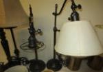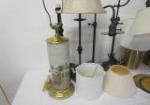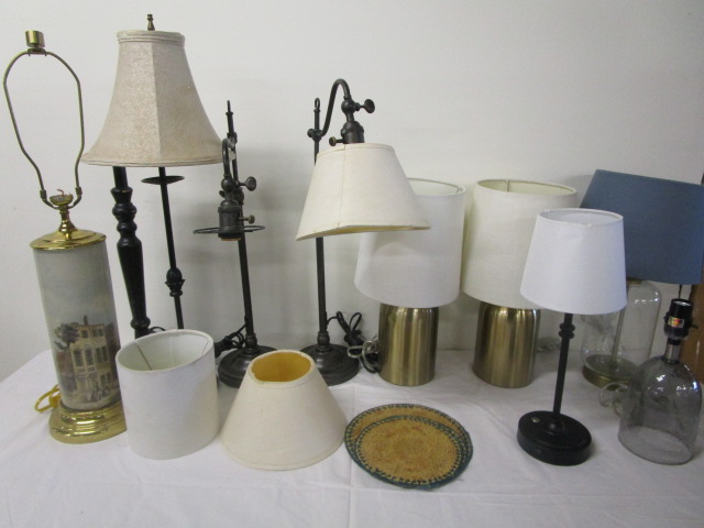 This large assortment of ten table lamps (ranging in size from 11" to 28") includes jar lamps, two stiffel-style lamps, a pair of gold toned metal lamps and more. These items are in previously owned condition. These items have not been tested and are being sold "as is". Please preview.