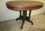 This stunning antique Victorian style oval table with ornately carved legs and casters measures 30"W X 22" D X 28"H. This item does have some wear due to age but could easily be refinished. Please preview.