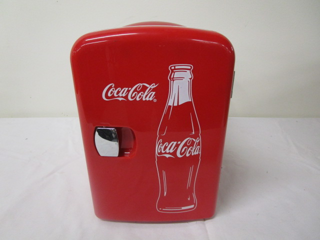This iconic portable electric 4-liter Coca-Cola mini fridge cooler can hold up to six standard 12 ounce cans. This item is in previously owned, good condition. This item has been tested and does power up. It is being sold as is. Please preview.