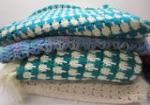 This nice collection of seven homemade afghans and blankets includes a grey wool style blanket. These items are in previously owned condition. Please preview.