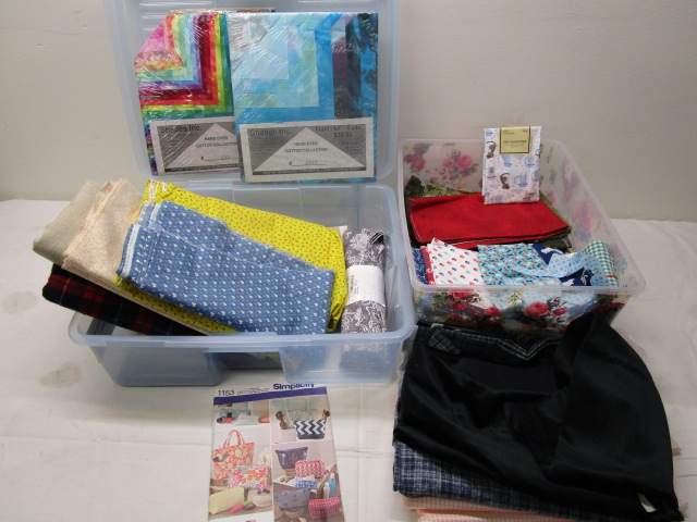 Fabric Remnants. All new pieces. Comes with bins. Please preview.