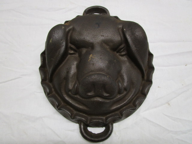 This interesting 11" cast metal pig head mold is in previously owned, good condition. Please preview.