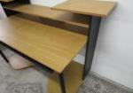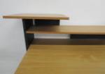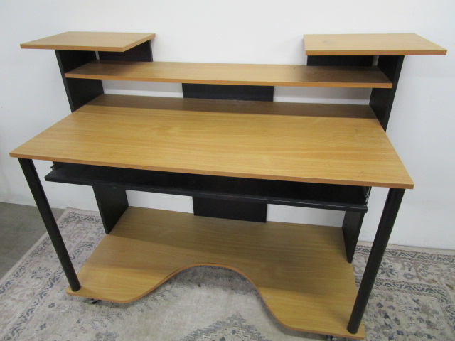 This modern composite, computer/music recording studio desk features a design specifically for organizing monitors, speakers, and keyboards. It also features a sliding keyboard shelf. This item measures 47"W X 24"D X 40-1/2""H. This item is in previously owned, good condition. Please preview.