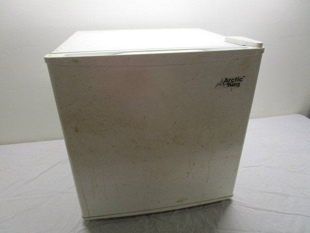 This Arctic King brand compact 1.1 Cu.ft. mini-refrigerator (model # AUFM001AEW). This item measures 18-1/2"W X 17-1/2"D X 19"H. It has been tested and does power up. It is being sold as is. Please preview.