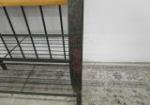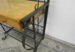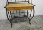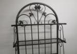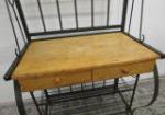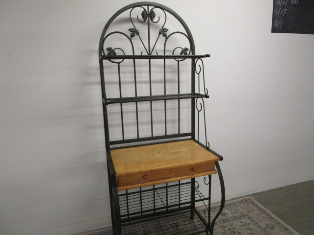 This vintage-style metal baker's rack features an arched style wrought metal frame with two metal shelves over a wood work area over two drawers over two additional shelves. This item measures 31"W X 21"D X 78"H. This item does show rust in areas. Overall it is in This item is in previously owned condition. Please preview.
