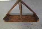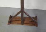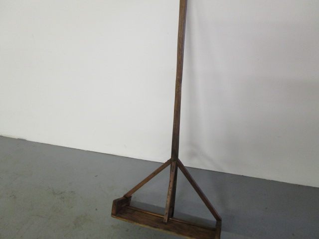 It is constructed entirely from wood, featuring a long handle attached to a wide, flat base with supporting braces.