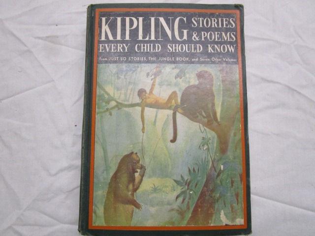 1938 edition of Kipling stories and poems every child should know. Hardcover book. The book has some edgeware on the corner and along the spine but it is intact cover to cover. There is writing in the book and the dedication as a gift for a birthday in 1940. Book is in good shape, please preview.